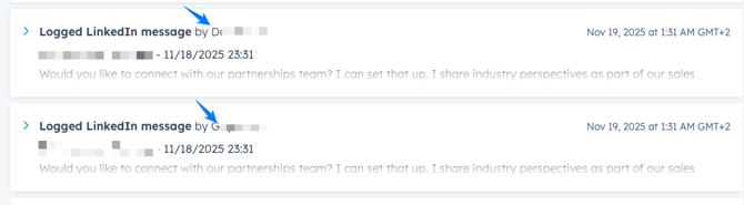 - From Hublead’s perspective, these are two separate sync actions performed by two different HubSpot users, so HubSpot may end up with duplicate activities or records related to that same LinkedIn conversation.